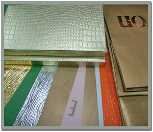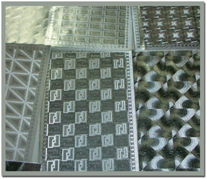 The principle is we install metal pattern plate on the surface of printing cylinder, then have it heated and pressed to make the pattern shown on paper, making reflex agleam light and various patterns.